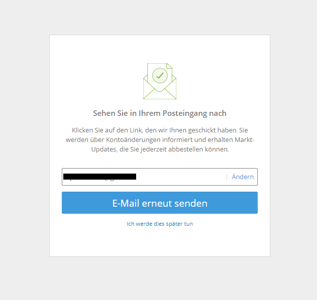 Du wirst auf eine Seite geleitet (siehe rechts) und bekommst gleichzeitig eine E-Mail, an die angegebene Adresse, geschickt. Klicke auf den grünen Button. Anschließend landest Du direkt auf der etoro Seite.